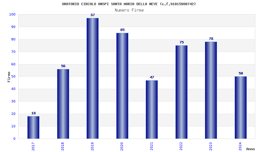 | Anno | Firme | Importi | Media | Naz. | Reg. | Prov. | Comu. |