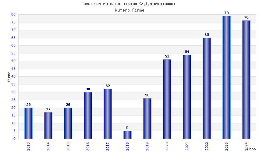 | Anno | Firme | Importi | Media | Naz. | Reg. | Prov. | Comu. |