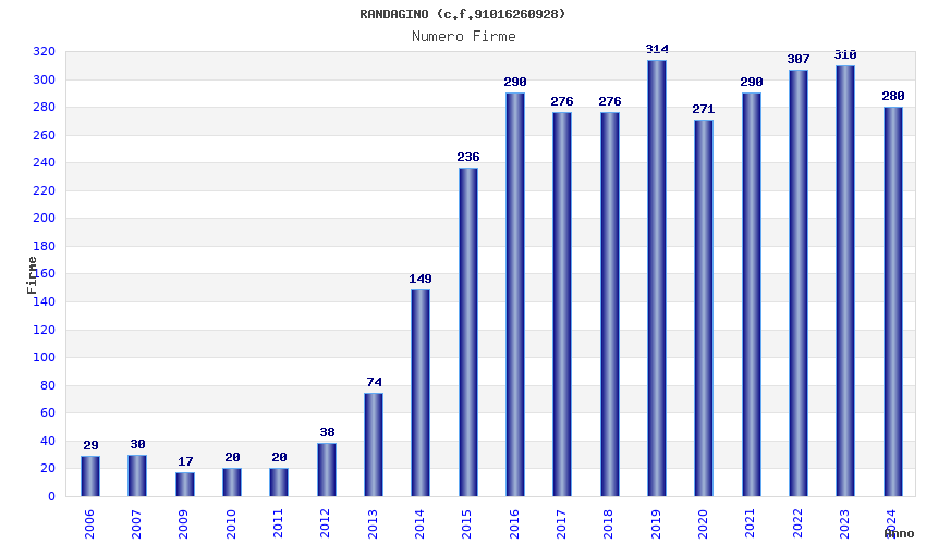 Anno Firme Importi Media Naz. Reg. Prov. Comu.