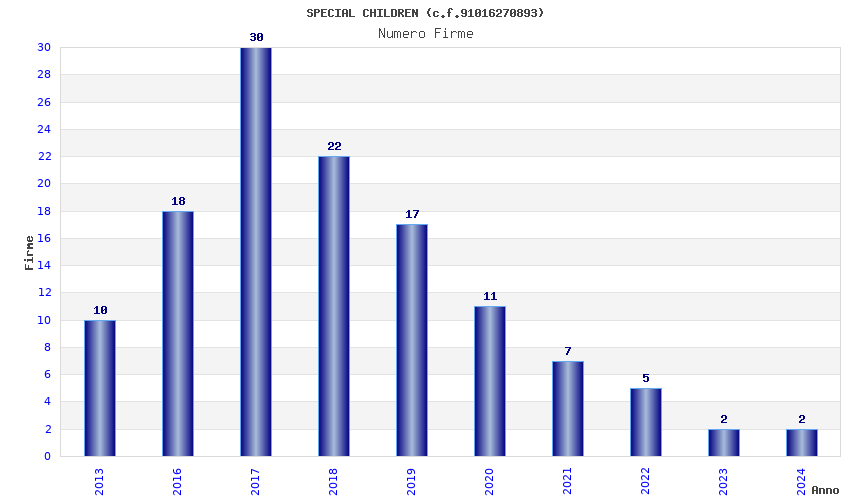 | Anno | Firme | Importi | Media | Naz. | Reg. | Prov. | Comu. |