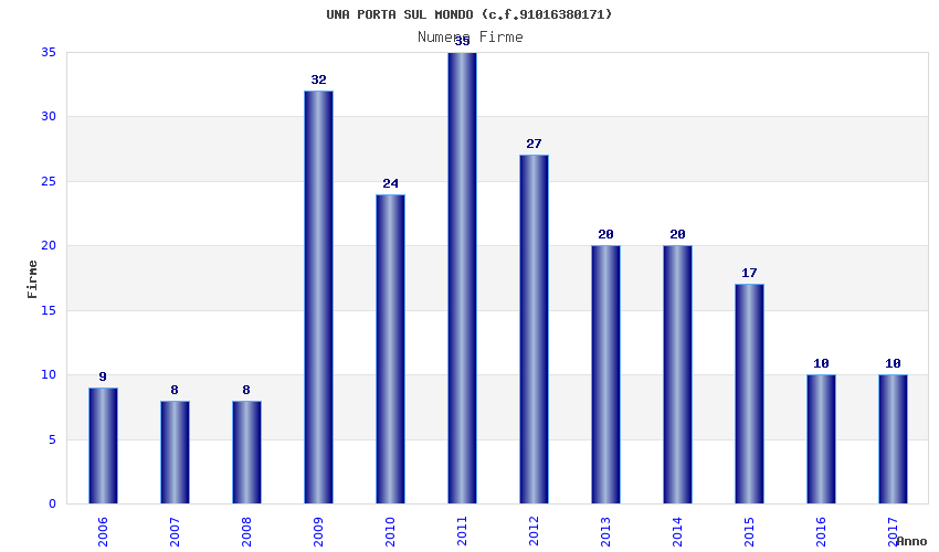 | Anno | Firme | Importi | Media | Naz. | Reg. | Prov. | Comu. |