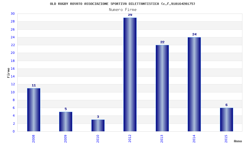 | Anno | Firme | Importi | Media | Naz. | Reg. | Prov. | Comu. |