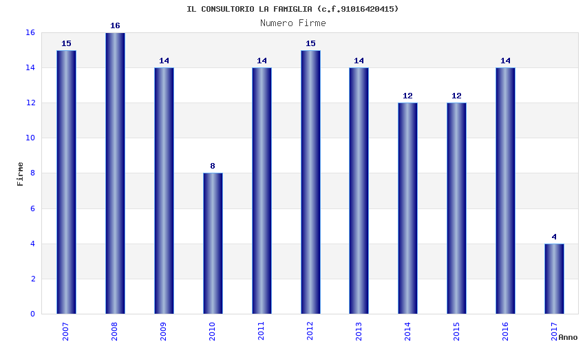 | Anno | Firme | Importi | Media | Naz. | Reg. | Prov. | Comu. |