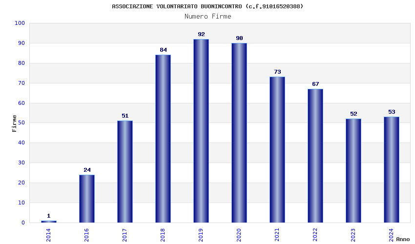 | Anno | Firme | Importi | Media | Naz. | Reg. | Prov. | Comu. |
