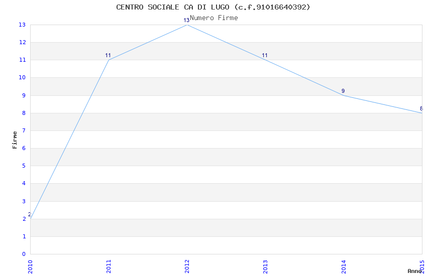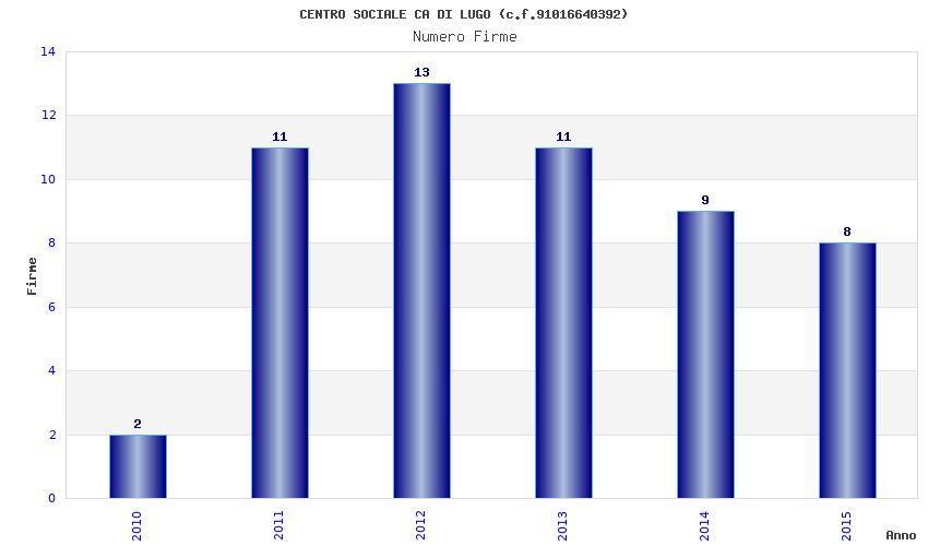 | Anno | Firme | Importi | Media | Naz. | Reg. | Prov. | Comu. |