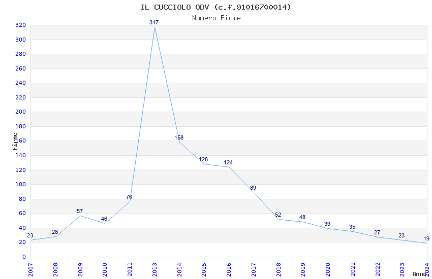 | 2013 | 317 | 5.053,13 | 15,94 | 8.555 | 608 | 341 | 7 |
