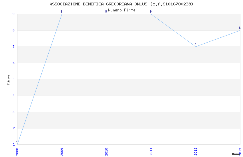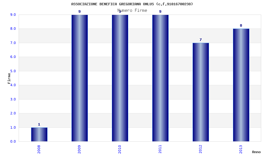 | Anno | Firme | Importi | Media | Naz. | Reg. | Prov. | Comu. |