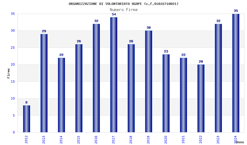 | Anno | Firme | Importi | Media | Naz. | Reg. | Prov. | Comu. |