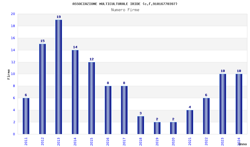 | Anno | Firme | Importi | Media | Naz. | Reg. | Prov. | Comu. |