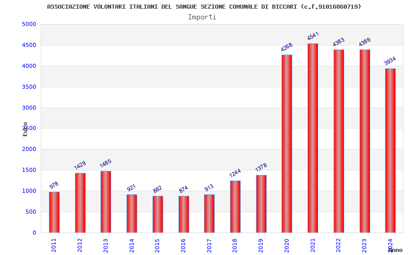 | Anno | Firme | Importi | Media | Naz. | Reg. | Prov. | Comu. |