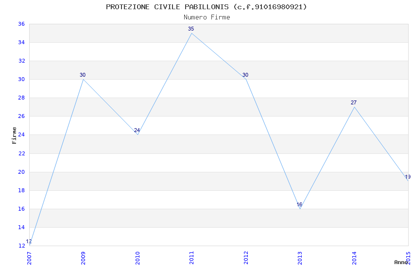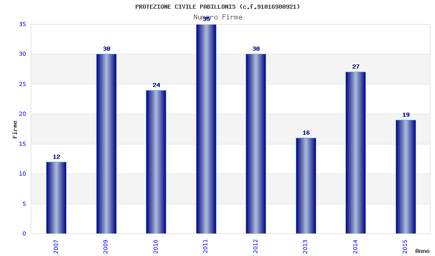 | Anno | Firme | Importi | Media | Naz. | Reg. | Prov. | Comu. |