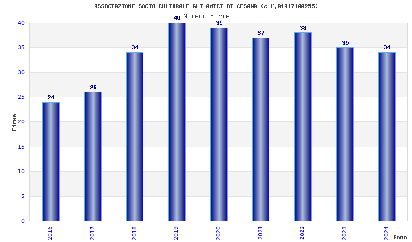| Anno | Firme | Importi | Media | Naz. | Reg. | Prov. | Comu. |
