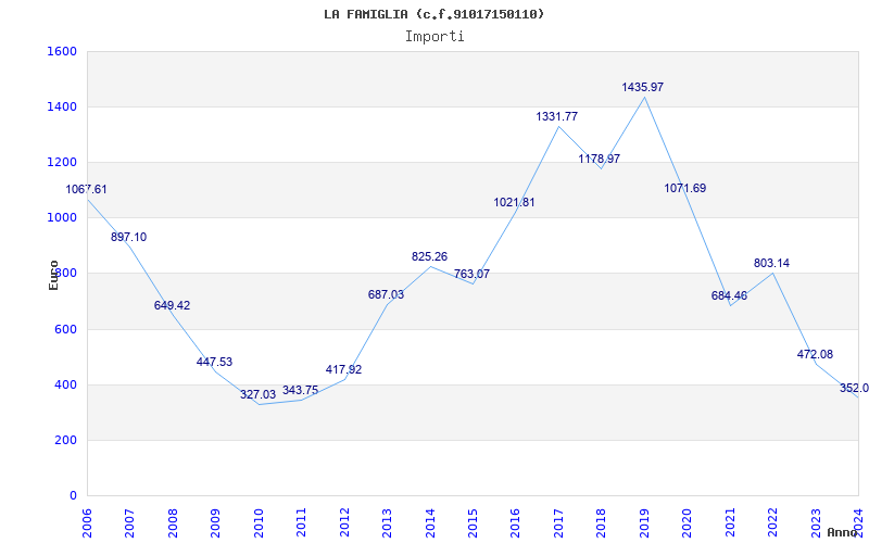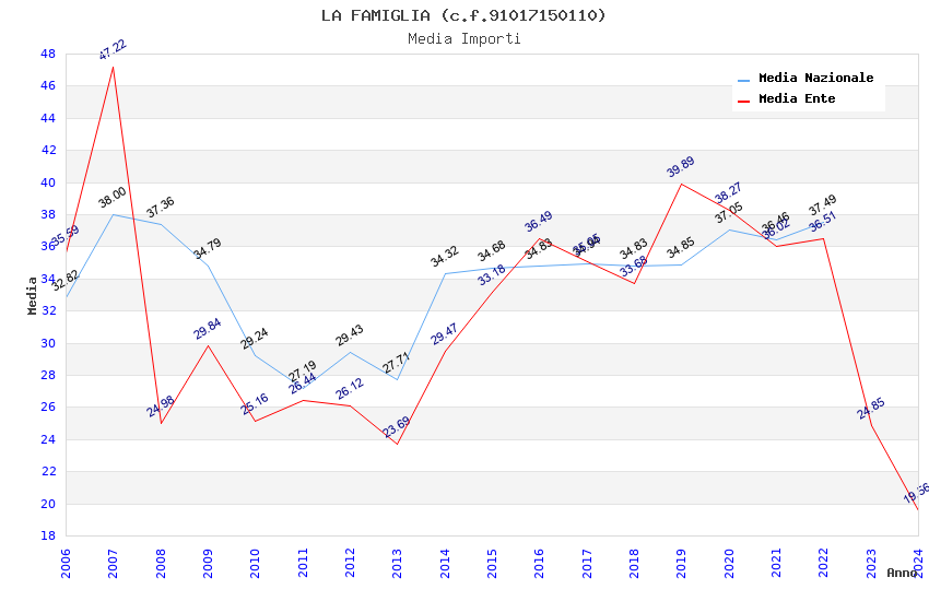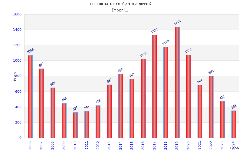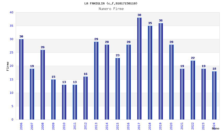 | Anno | Firme | Importi | Media | Naz. | Reg. | Prov. | Comu. |