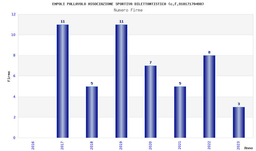 | Anno | Firme | Importi | Media | Naz. | Reg. | Prov. | Comu. |