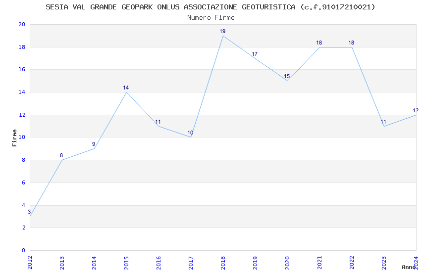 | 2019 | 17 | 585,76 | 34,46 | 43.800 | 3.794 | 159 | 11 |