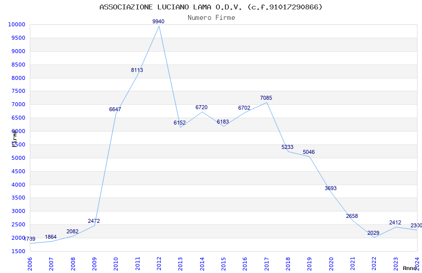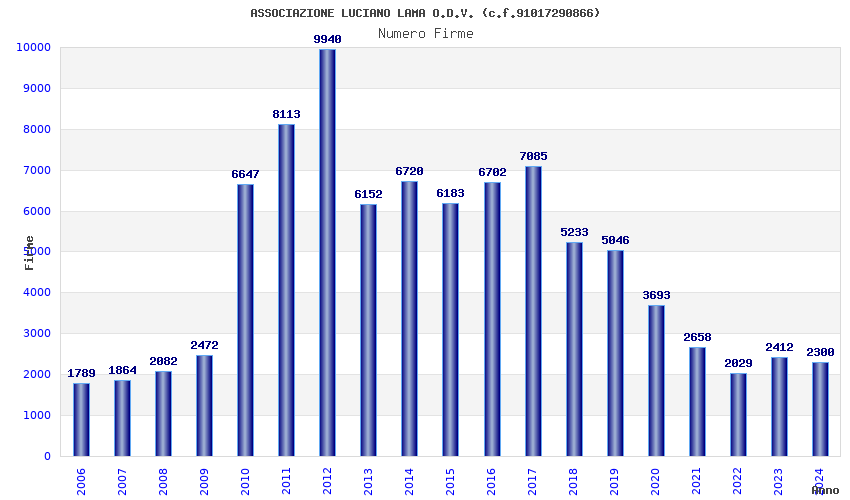 | Anno | Firme | Importi | Media | Naz. | Reg. | Prov. | Comu. |