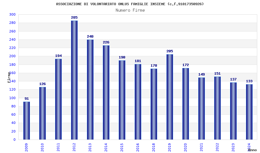| Anno | Firme | Importi | Media | Naz. | Reg. | Prov. | Comu. |