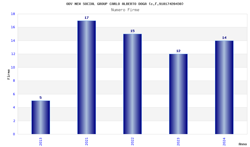 | Anno | Firme | Importi | Media | Naz. | Reg. | Prov. | Comu. |