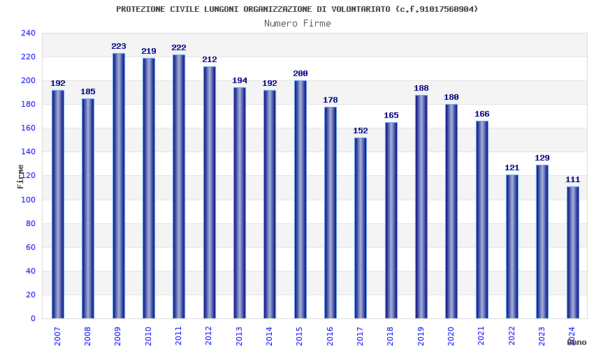 | Anno | Firme | Importi | Media | Naz. | Reg. | Prov. | Comu. |