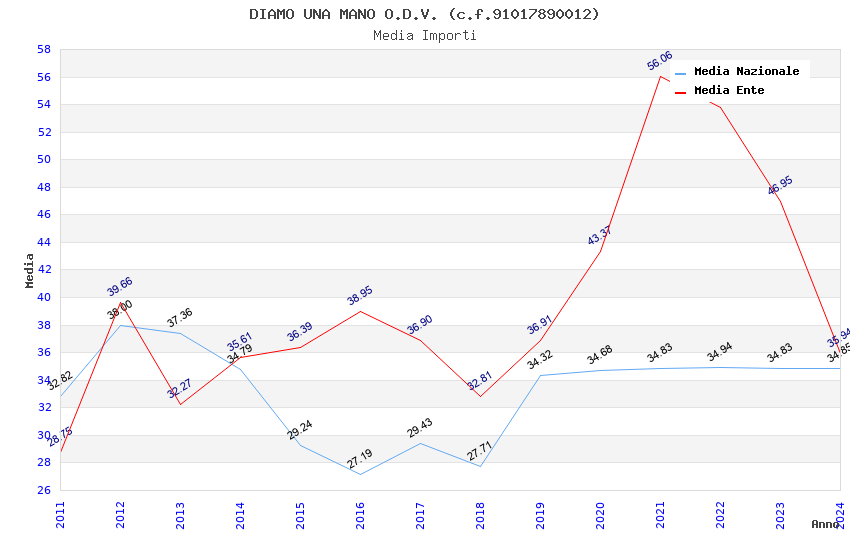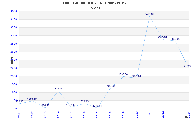 | Anno | Firme | Importi | Media | Naz. | Reg. | Prov. | Comu. |