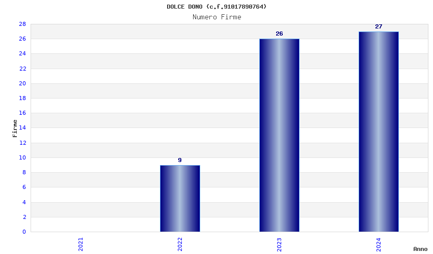 | Anno | Firme | Importi | Media | Naz. | Reg. | Prov. | Comu. |