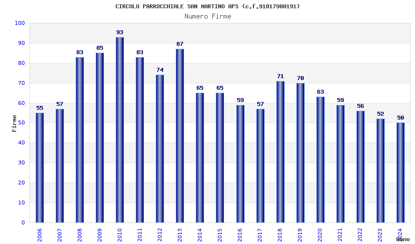 | Anno | Firme | Importi | Media | Naz. | Reg. | Prov. | Comu. |