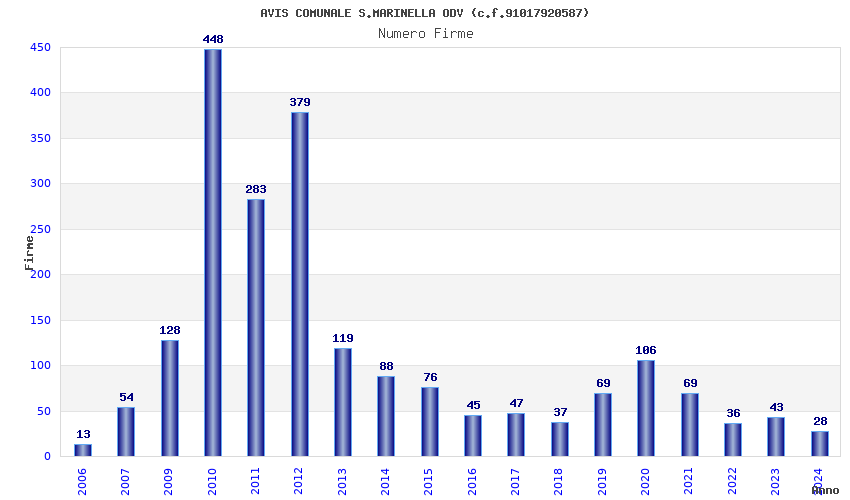 | Anno | Firme | Importi | Media | Naz. | Reg. | Prov. | Comu. |