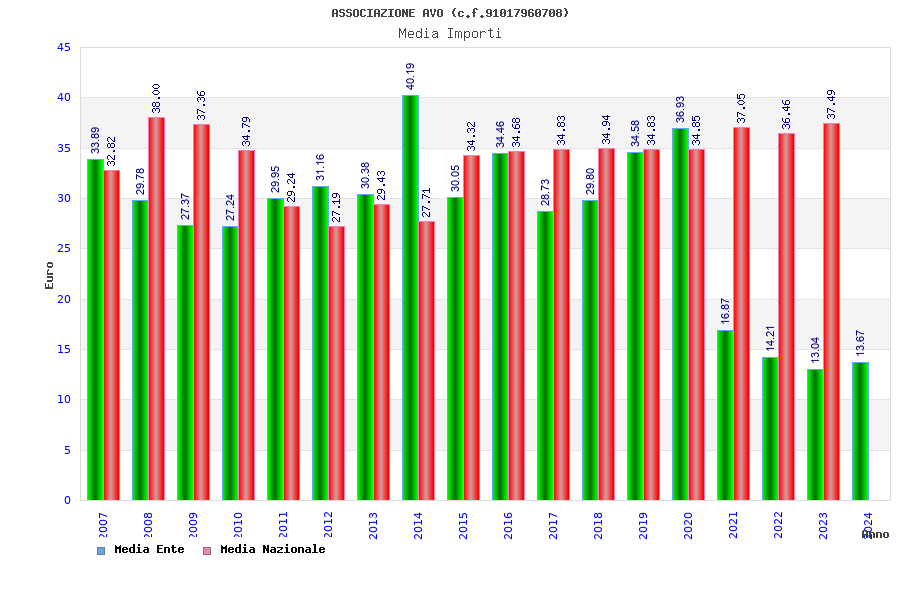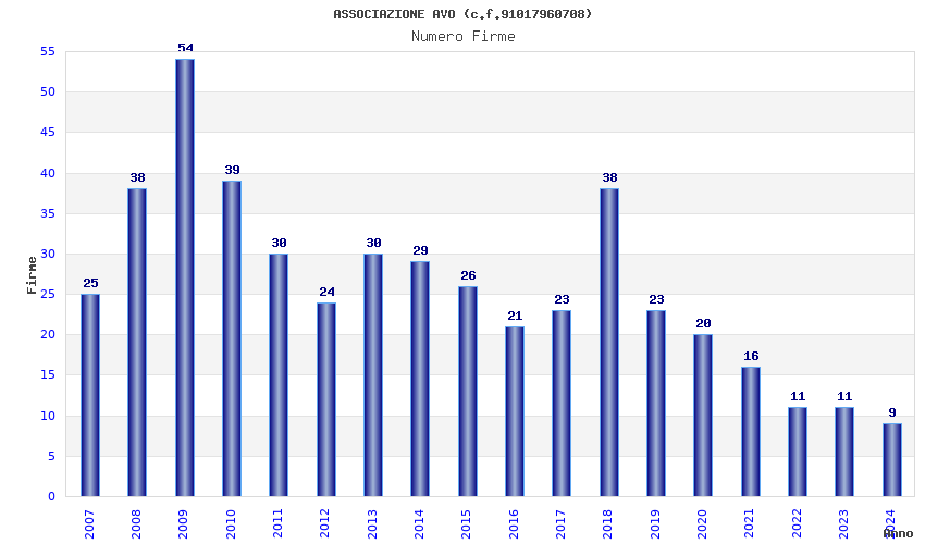 | Anno | Firme | Importi | Media | Naz. | Reg. | Prov. | Comu. |