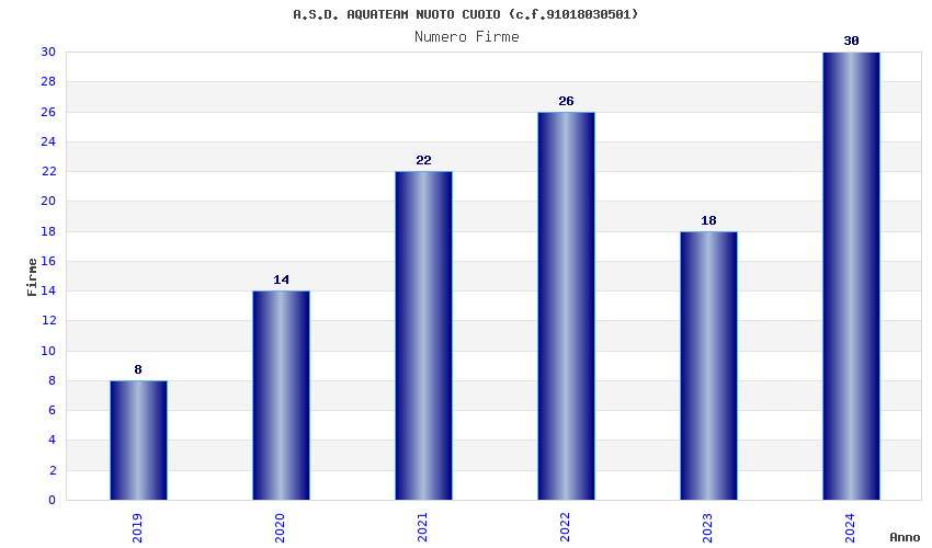 | Anno | Firme | Importi | Media | Naz. | Reg. | Prov. | Comu. |