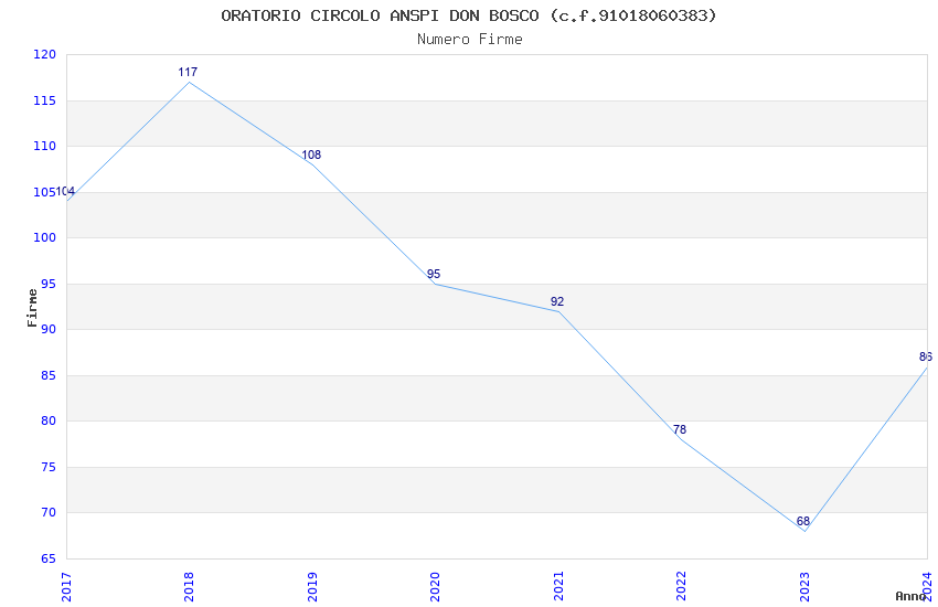 | 2017 | 104 | 3.688,04 | 35,46 | 14.672 | 1.289 | 78 | 4 |