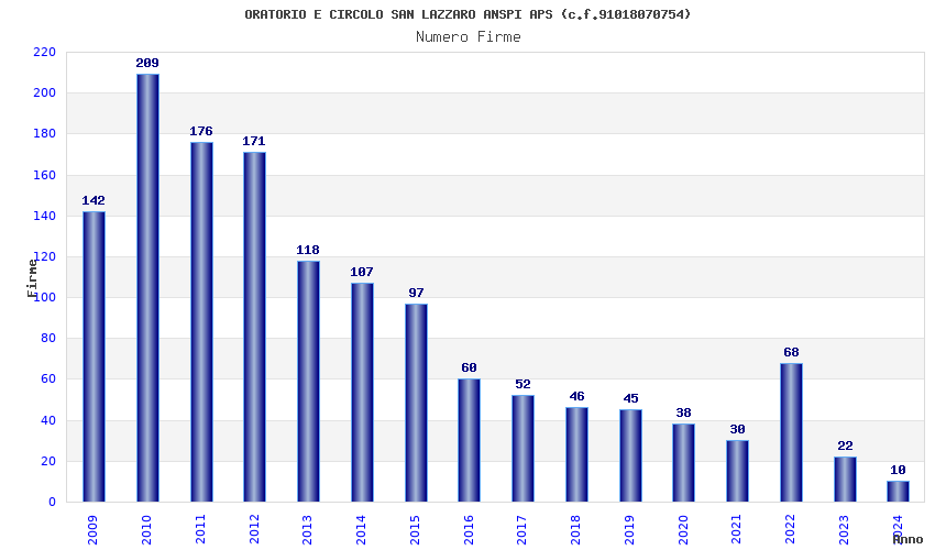 | Anno | Firme | Importi | Media | Naz. | Reg. | Prov. | Comu. |