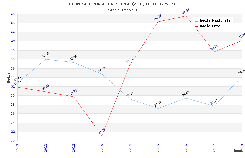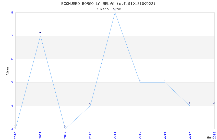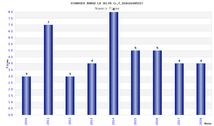 | Anno | Firme | Importi | Media | Naz. | Reg. | Prov. | Comu. |