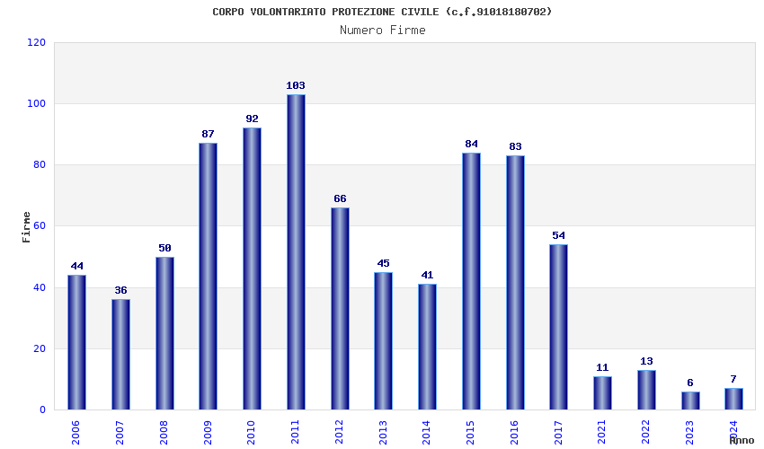 | 2006 | 44 | 1.279,14 | 29,07 | 18.187 | 81 | 63 | 2 |
