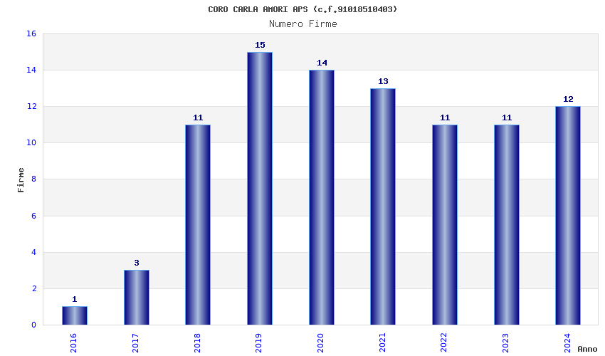 | Anno | Firme | Importi | Media | Naz. | Reg. | Prov. | Comu. |