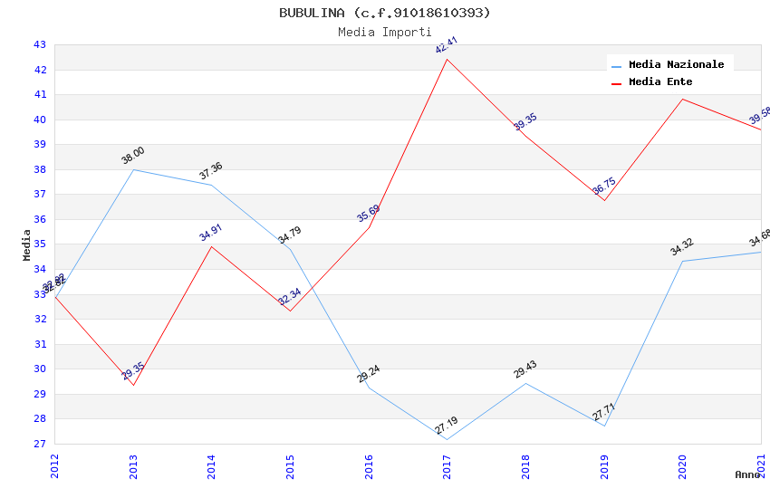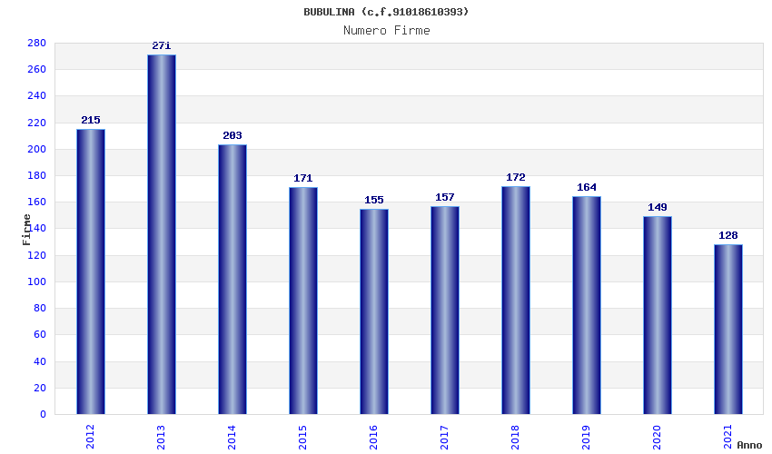 | Anno | Firme | Importi | Media | Naz. | Reg. | Prov. | Comu. |