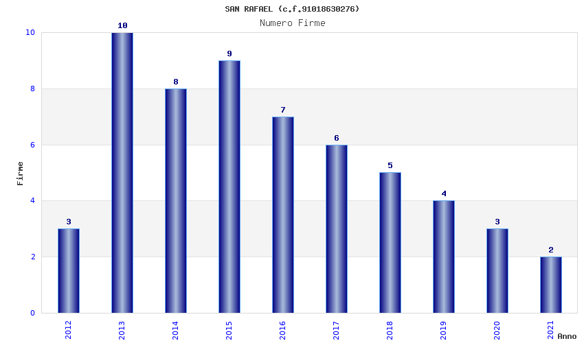 | Anno | Firme | Importi | Media | Naz. | Reg. | Prov. | Comu. |