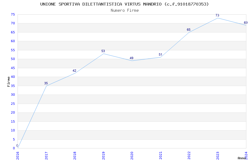 | 2023 | 73 | 2.216,38 | 30,36 | 21.916 | 1.903 | 236 | 17 |