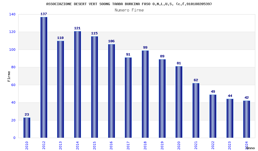 | Anno | Firme | Importi | Media | Naz. | Reg. | Prov. | Comu. |