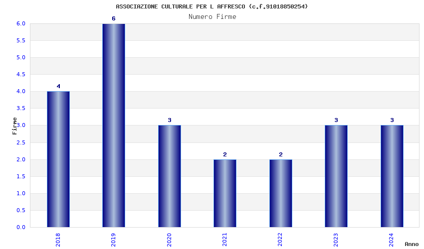 | Anno | Firme | Importi | Media | Naz. | Reg. | Prov. | Comu. |