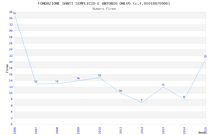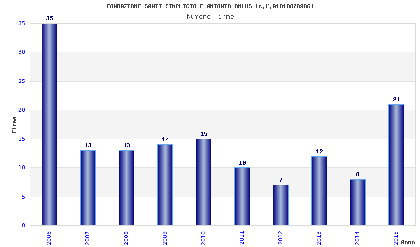 | Anno | Firme | Importi | Media | Naz. | Reg. | Prov. | Comu. |