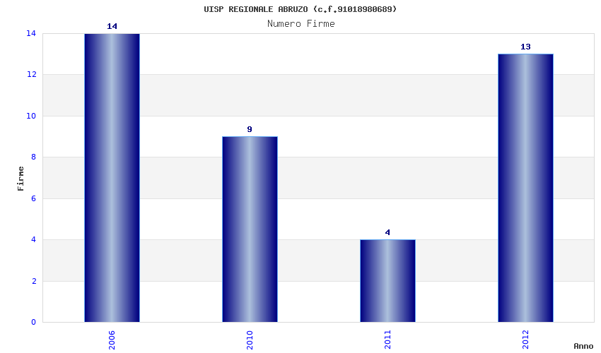 | Anno | Firme | Importi | Media | Naz. | Reg. | Prov. | Comu. |