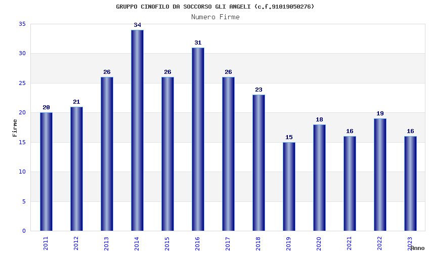 | Anno | Firme | Importi | Media | Naz. | Reg. | Prov. | Comu. |