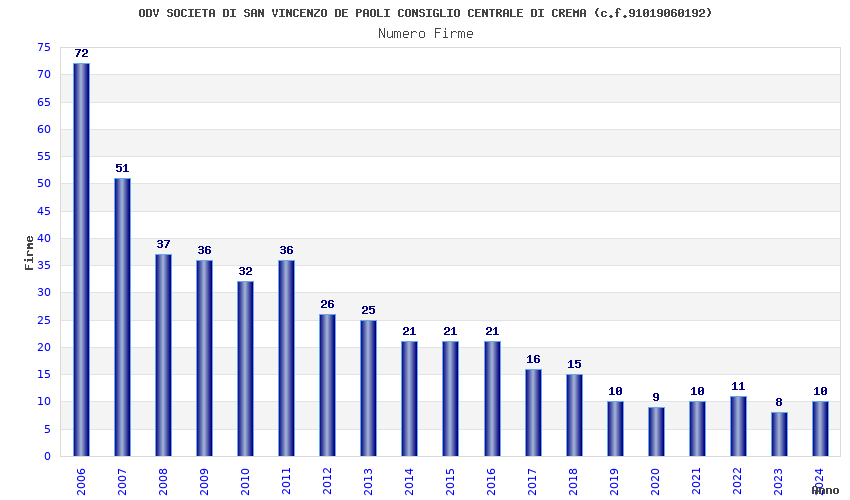 | Anno | Firme | Importi | Media | Naz. | Reg. | Prov. | Comu. |