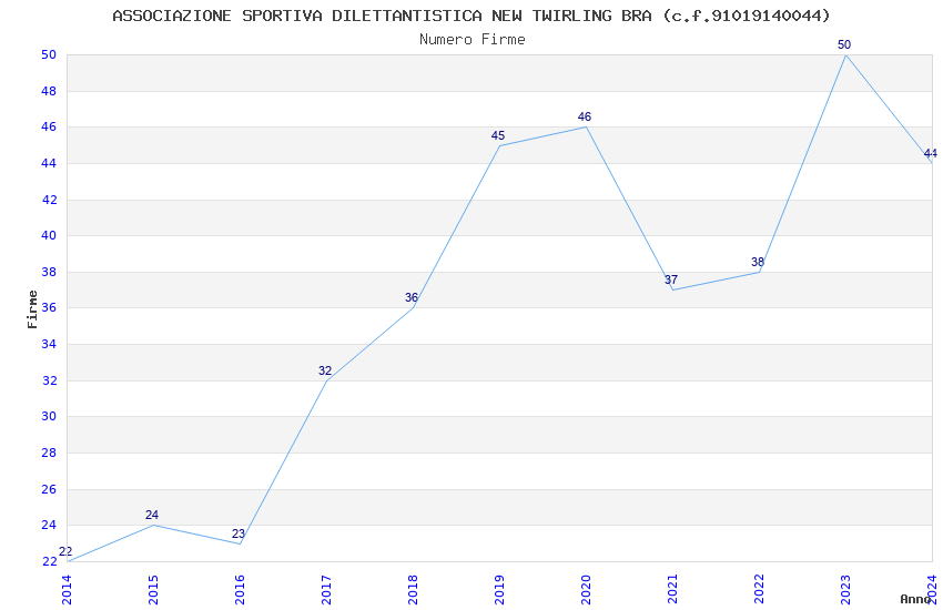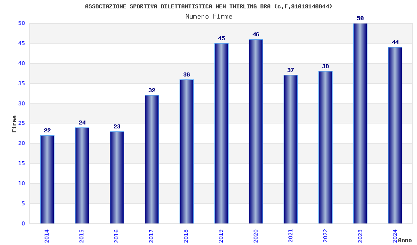 | 2023 | 50 | 2.165,09 | 43,30 | 22.294 | 1.664 | 254 | 15 |