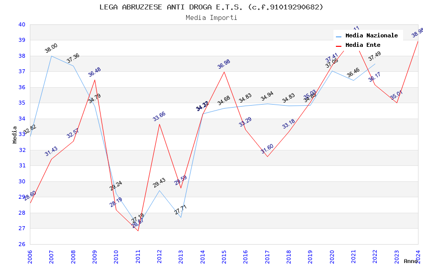 | Anno | Firme | Importi | Media | Naz. | Reg. | Prov. | Comu. |
