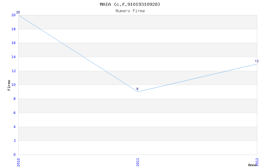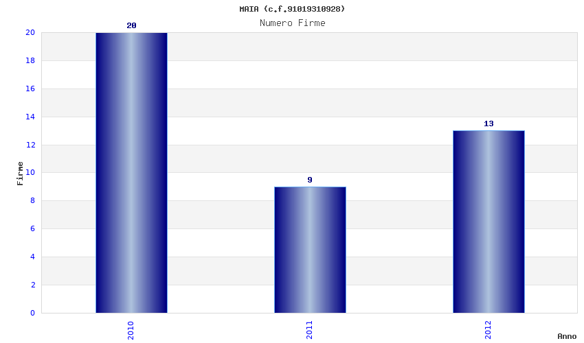 | Anno | Firme | Importi | Media | Naz. | Reg. | Prov. | Comu. |