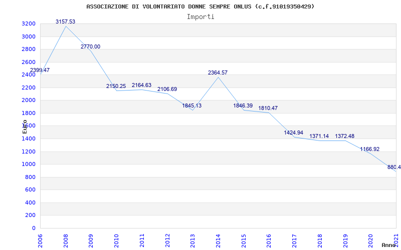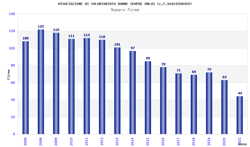 | Anno | Firme | Importi | Media | Naz. | Reg. | Prov. | Comu. |