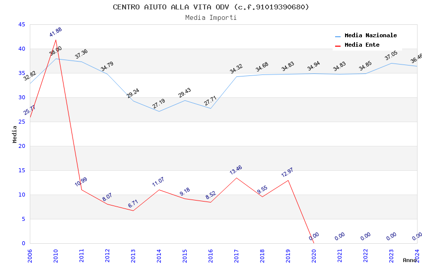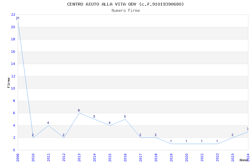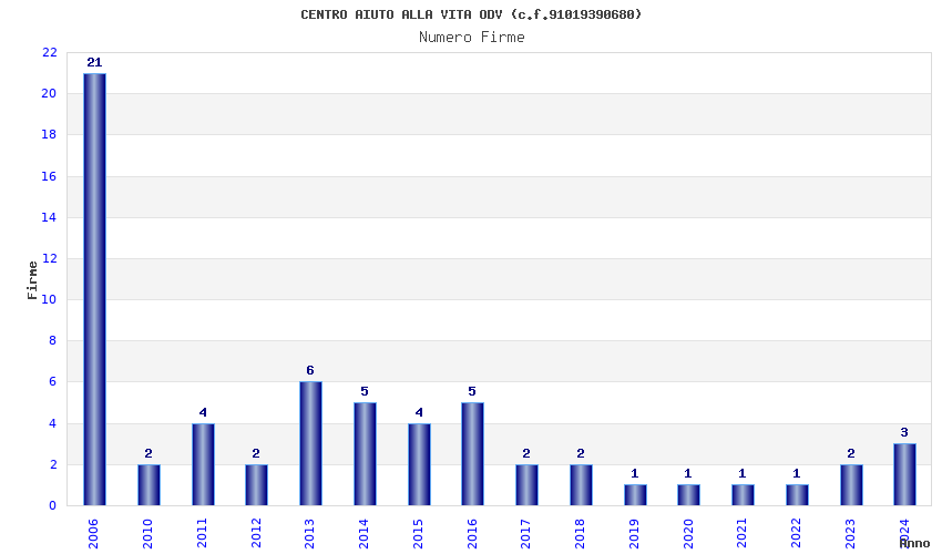 | Anno | Firme | Importi | Media | Naz. | Reg. | Prov. | Comu. |