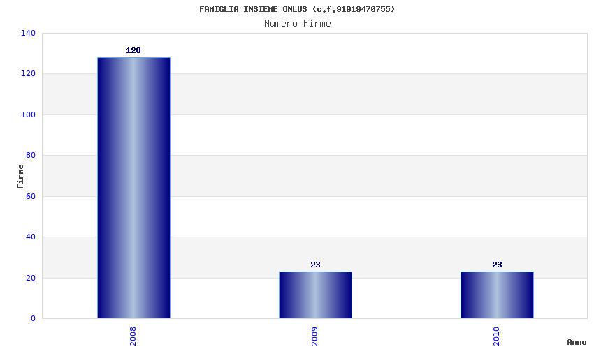| Anno | Firme | Importi | Media | Naz. | Reg. | Prov. | Comu. |