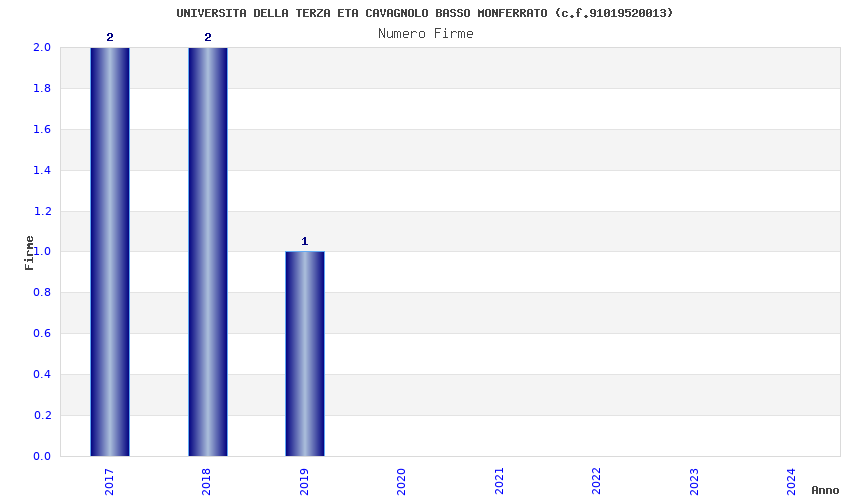 | Anno | Firme | Importi | Media | Naz. | Reg. | Prov. | Comu. |